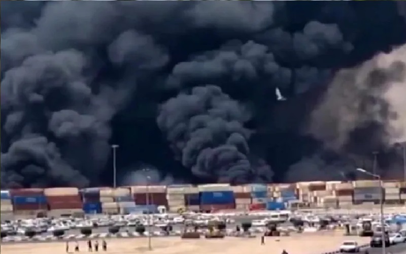 وبث التلفزيون لقطات تظهر عمودا كبيرا من الدخان الأسود يتصاعد في السماء من الميناء.