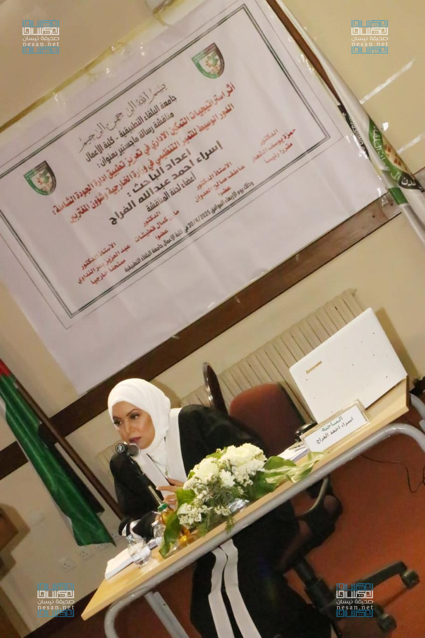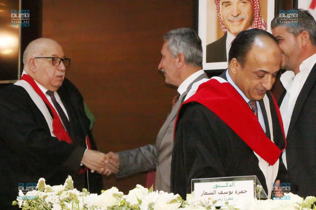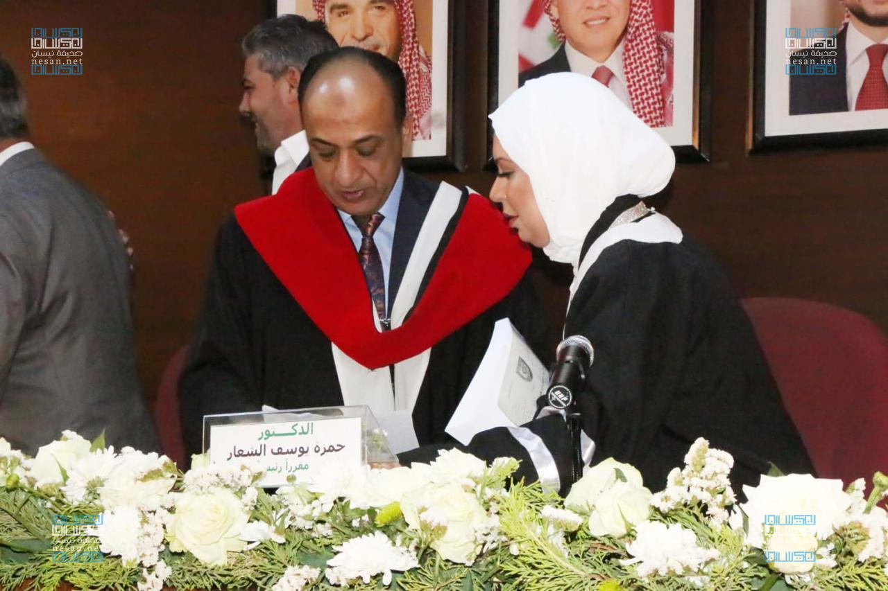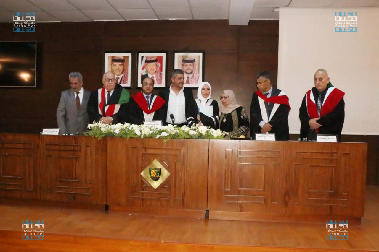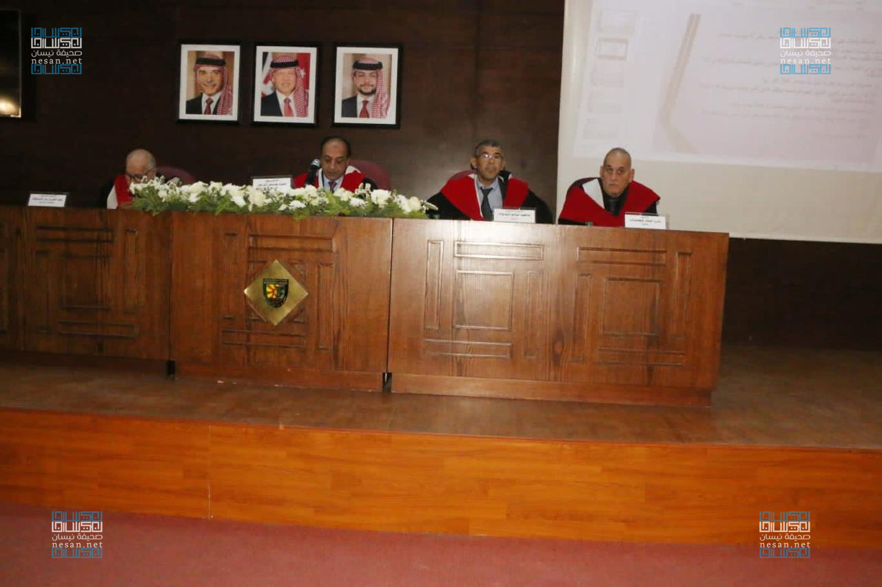 وقد ناقش الرسالة لجنة مكونة من الدكتور حمزة يوسف الشعار المشرف والمقرر وبعضوية الاستاذ الدكتور عاطف صالح العدوان والدكتور مازن كمال قطيشات والمناقش الخارجي الاستاذ الدكتور عبدالعزيز بدر النداوي