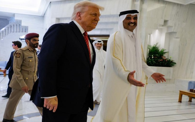 وأضاف أميرقطرعقب استقبالهالرئيسالأميركي في الدوحة: "أعلم أنك رجل سلام وتريد إحلال السلام في المنطقة"، مشيرا إلى أن بإمكان الدوحة وواشنطن مواصلةالعملمعا لإحلال السلام في المنطقة، أو بمناطق أخرى كالسلام بينروسياوأوكرانيا.