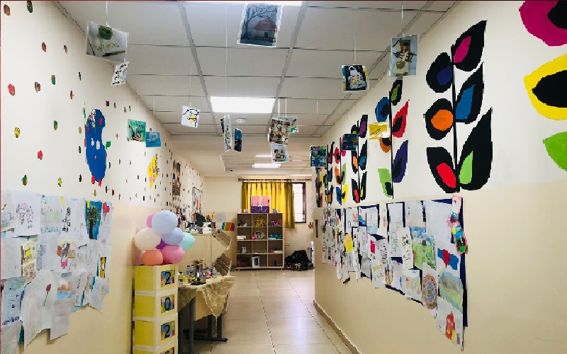 مدارس قمرة الوطنيه تفتتح معرض فني المعلمة ميرا