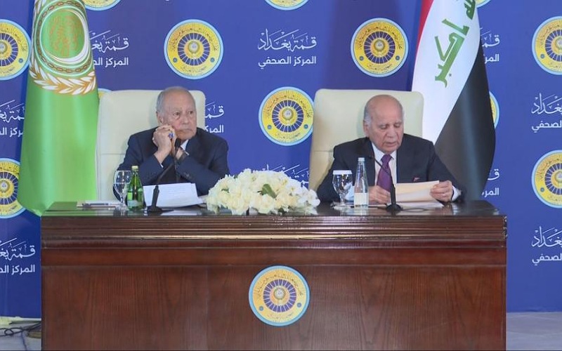 وقال حسين خلال مؤتمر صحفي مشترك مع الأمين العام لجامعة الدول العربية، أحمد أبو الغيط، إن البيان الختامي لقمة بغداد، التي عقدت في العاصمة العراقية، السبت، طالب المجتمع الدولي بتنفيذ قرارات مجلس الأمن الدولي بشأن العدوان على قطاع غزة، ووقف جميع الأعمال العدائية التي تزيد من معاناة المدنيين الأبرياء.