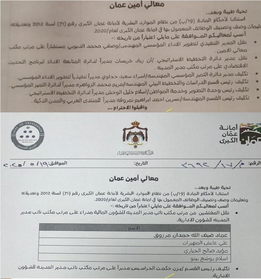 تنقلات وتكليفات لكبار الموظفين في امانة عمان (أسماء)