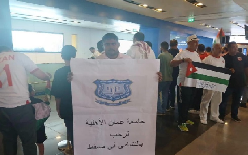 نيسان ـ جامعة عمان الاهلية ممثلة بعدد من طلبتها وخريجيها وكوادرها وجمهورها في مسقط بسلطنة عمان الشقيقة كانت حاضرة باستقبال فريق " النشامى" الاردني لكرة القدم لدى وصوله الى مسقط في سلطنة عمان لملاقاة الفريق العُماني في مباراة حاسمة يوم الخميس القادم 5-6-2025 عند الساعة السابعة مساءً بتوقيت الأردن، على ستاد مجمع قابوس الدولي في مسقط، قبل العودة إلى عمان لمواجهة العراق يوم الثلاثاء 10 حزيران على ستاد عمان الدولي عند الساعة 9:15 مساءً، ضمن تصفيات كأس العالم لكرة القدم 2026 .