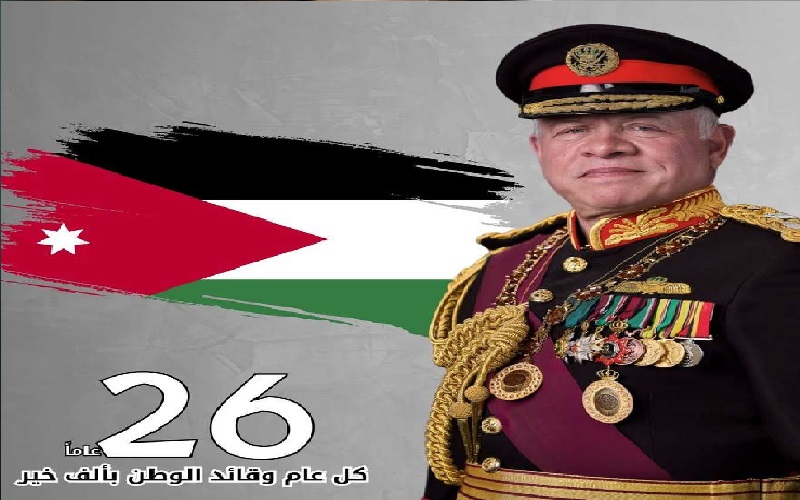 نيسان ـ فعت القوات المسلحة الأردنية – الجيش العربي أسمى آيات الولاء والتهنئة لجلالة القائد الأعلى الملك عبدالله الثانيبمناسبة عيد الجلوس الملكي الـ26،مجددين العهد على الوفاء للوطن والعرش