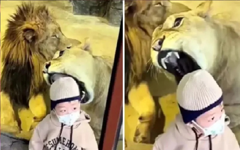 تُظهر اللقطات المُنتشرة على منصات التواصل الاجتماعي على نطاق واسع، لحظة جلوس الطفل بالقرب من الحاجز الزجاجي، بينما قفزت "اللبؤة"، المستلقية على الأرض، فجأةً نحو الحاجز الزجاجي في محاولة لالتهام الطفل.