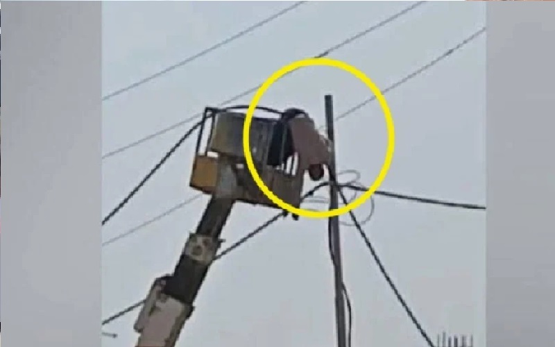 مسن يتدلى من عمود كهرباء بعد صعقة مروعة