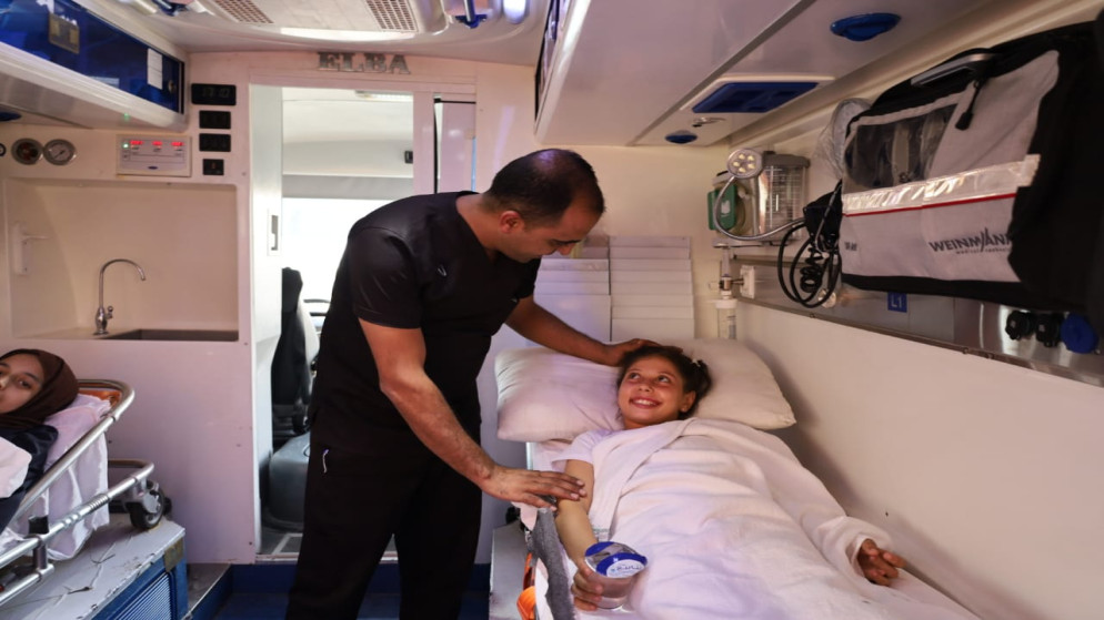 من جهتها، قالت عمة الطفلة ميسرا عمران ذات الـ 11 عاما، والتي تعاني من مرض السرطان، إن رؤية الكوادر الأردنية المرافقة لنا طوال مسافة انتقالنا من الأراضي الفلسطينية حتى وصولنا المملكة، أشعرتنا بكم هائل من الأمان، مضيفة كأني لأول مرة أشعر بطعم النوم بعدما حرمنا منه ليالي طويلة نتيجة القصف المتكرر.