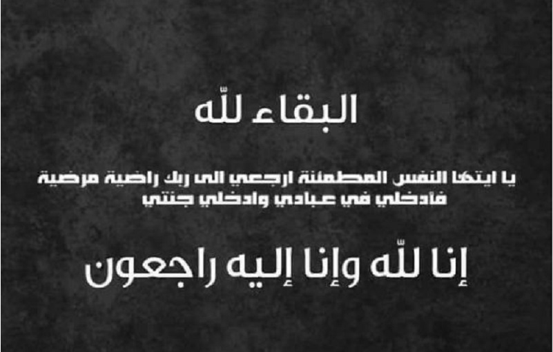 نعزي أنفسنا جميعا في مصابنا وان يلهم ذويه جميل الصبر والسلوان داعين الله العلي القدير أن يتقبل الفقيد بواسع رحمته وأن يسكنه فسيح جناته.