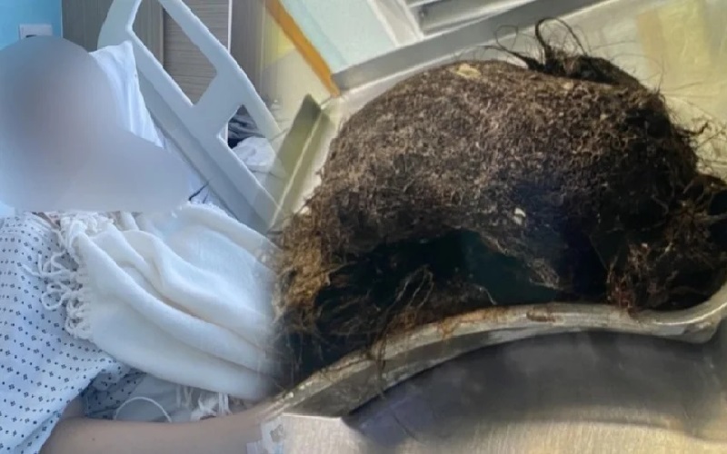 وأوضح الأطباء لاحقاً أن الكتلة كانت "تريكوبيزور"، وهي كرة من شعر متراكم نتيجة عادة مزمنة في تناول الشعر.