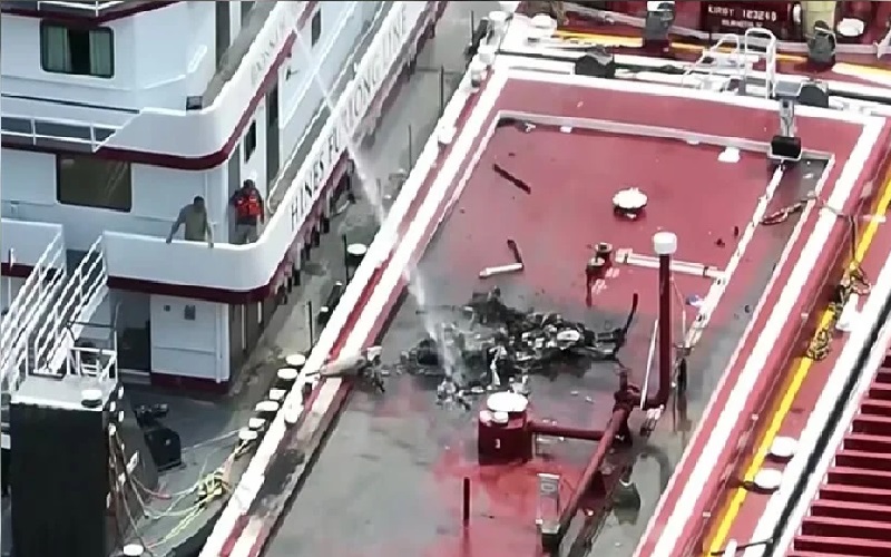 قال جوناثان ليندبرغ المتحدث باسم خفر السواحل الأمريكي، أن النيران اشتعلت بالبارجة التي لم يكن على متنها أي فرد، وأن رجال الإطفاء نجحوا في إخماد الحريق.