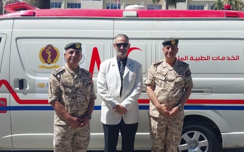 وقال مدير عام الخدمات الطبية الملكية العميد الطبيب سهل الحموري: "إن الخدمات الطبية الملكية بمختلف طواقمها الطبية والإدارية تعمل في سبيل تقديم الخدمة الطبية المتميزة للأشقاء في فلسطين"، مضيفاً أنسياراتالإسعاف الجديدة ستُسهم في زيادة قدرات الخدمات الطبية في التعامل مع الحالات الحرجة ونقل المصابين منالقطاعإلى المستشفيات العسكرية الأردنية، مثمناً دور المنظمة الباكستانية في تقديم الدعم بمختلف أشكاله".