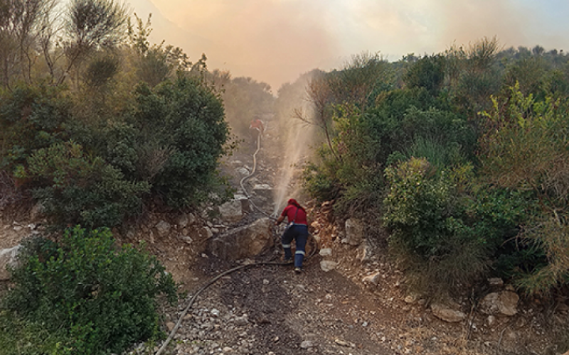 نيسان ـ تواصل فرق الإطفاء في سوريا محاولة احتواء الحريق الحراجي المتسع قرب موقع “فقرو” في سهل الغاب، وسط تحديات كبيرة تعيق السيطرة عليه، أبرزها التضاريس الجبلية القاسية والظروف المناخية الصعبة.