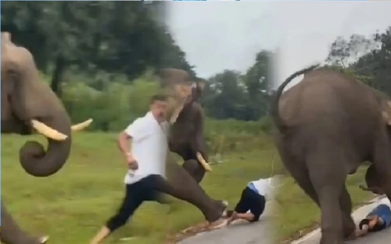 وتُظهر لقطات الفيديو المتداول الفيل واقفاً بجانب الطريق قبل أن يرفع خرطومه ويهاجم السائح الذي كان يركض محاولاً النجاة بحياته.