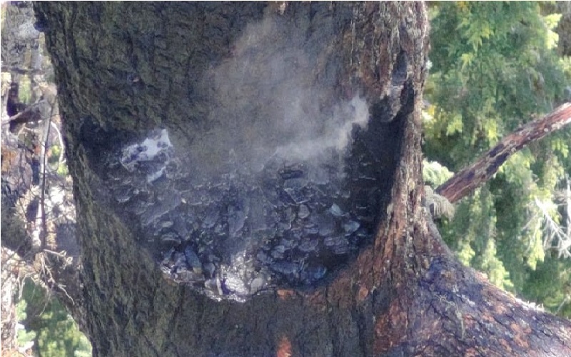 وأظهرت رحلة بطائرة مسيرة مزودة بأشعة تحت الحمراء أمس الثلاثاء، أنه لا توجد نيران أو دخان نشط في قمة الشجرة، لكنها رصدت حرارة داخل تجويف في الجذع على ارتفاع نحو 85 متراً، وفق ما قالت ميجان هاربر، المتحدثة باسم مكتب إدارة الأراضي الاتحادي.