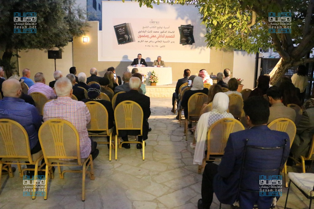 حفل إشهار الكتاب التاسع "التصميم الداخلي.. معنى ومضمون" للأستاذ الدكتور محمد ثابت البلداوي مساء الاثنين 25/آب/2025 م الذي أقيم في باحة جاليري الأورفلي في العاصمة عمان وبحضور الأستاذ الدكتور خير الدين الأمين المستشار الثقافي العراقي وعدد من كادر السلك الدبلوماسي والأكاديمي وشهد الحفل حضورًا واسعًا من المثقفين والمهتمين.