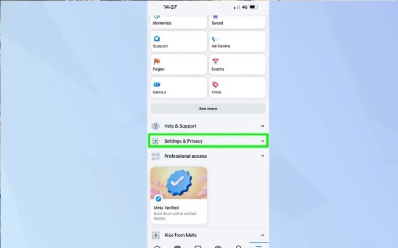 1- فتح تطبيق "فيس بوك" وانتقال إلى الإعدادات ثم الوصول إلى تفضيلات الحساب.
