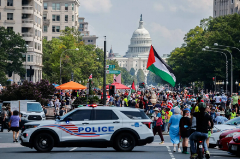 نيسان ـ تظاهر عدة آلاف من سكان العاصمة الأميركية واشنطن، اليوم السبت، لمطالبة الرئيس دونالد ترامب بإنهاء نشر قوات الحرس الوطني التي تقوم بدوريات في شوارع العاصمة.
