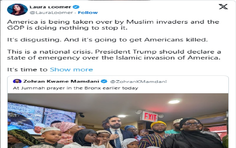 وبعد فوز المرشح الديمقراطي المسلم، زهران ممداني، في الانتخابات التمهيدية الديمقراطية الأخيرة لرئاسة نيويورك، حذّرت من أنه سيكون مسؤولاً عن "أحداث 11 سبتمبر/أيلول أخرى ستقع في نيويورك".