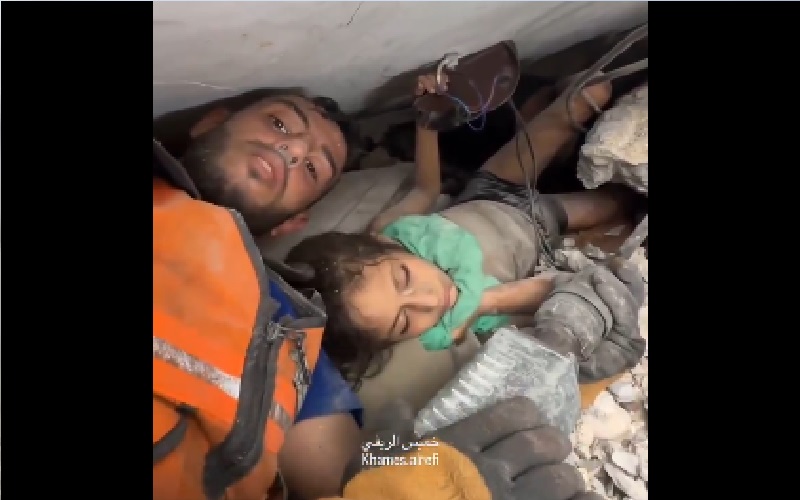 نيسان ـ بعد استهداف مربعٍ سكني في ساحة الشوا بمدينة غزة ليلة أمس، ظلّت مرح الحداد عالقة تحت أنقاض منزل عائلة مسعود منذ الساعة الواحدة بعد منتصف الليل وحتى الحادية عشرة من صباح اليوم، هي وعدد من أفراد العائلة ما زالوا أحياء تحت الركام.