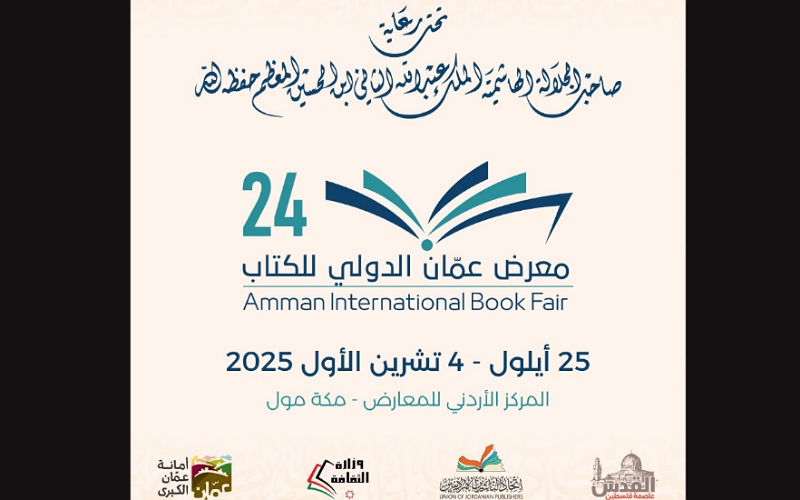نيسان ـ تحت رعاية جلالة الملك عبد الله الثاني حفظه الله، تنطلق الخميس المقبل 25 أيلول 2025، فعاليات الدورة (24) لمعرض عمان الدولي للكتاب الذي ينظمه اتحاد الناشرين الأردنيين.