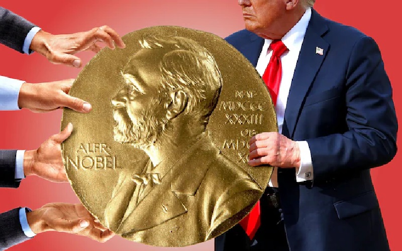 ترامب التي المشارك سياسيا وعسكريا في ابادة اهل غزة يطارد جائزة نوبل مثل فريسة في البرية.