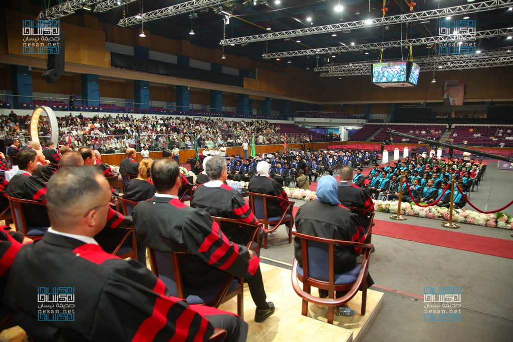 يومٌ نحتفي فيه بتخريج نخبةٍ متميزة من طلبة كلية الدراسات العليا، وكلية الآداب والعلوم، وكلية الحقوق ، وكلية الأعمال ، وكلية العلوم التربوية، وكلية إدارة الضيافة والسياحة.