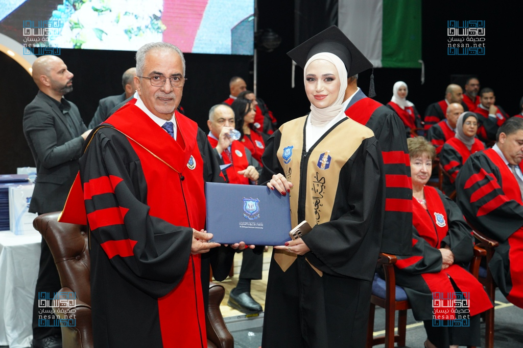 نيسان ـ رعى الاستاذ الدكتور ساري حمدان رئيس جامعة عمان الاهلية مساء أمس 30-9-2025 على مسرح الأرينا احتفال الجامعة لليوم الثاني بتخريج طلبتها للفصل الثاني 2024-2025 من الفوج (32) لكليات : " الدراسات العليا ، الآداب والعلوم ، العلوم التربوية ، إدارة الضيافة والسياحة ، الحقوق ، الأعمال " بحضورمساعد الرئيس لشؤون الاعتماد والجودة والتخطيط الدكتورإياد شعبان والسادة العمداء وأعضاء الهيئة التدريسية وعدد من أعضاء الهيئة الإدارية وحشد كبير من ذوي الطلبة الخريجين والمدعوين .