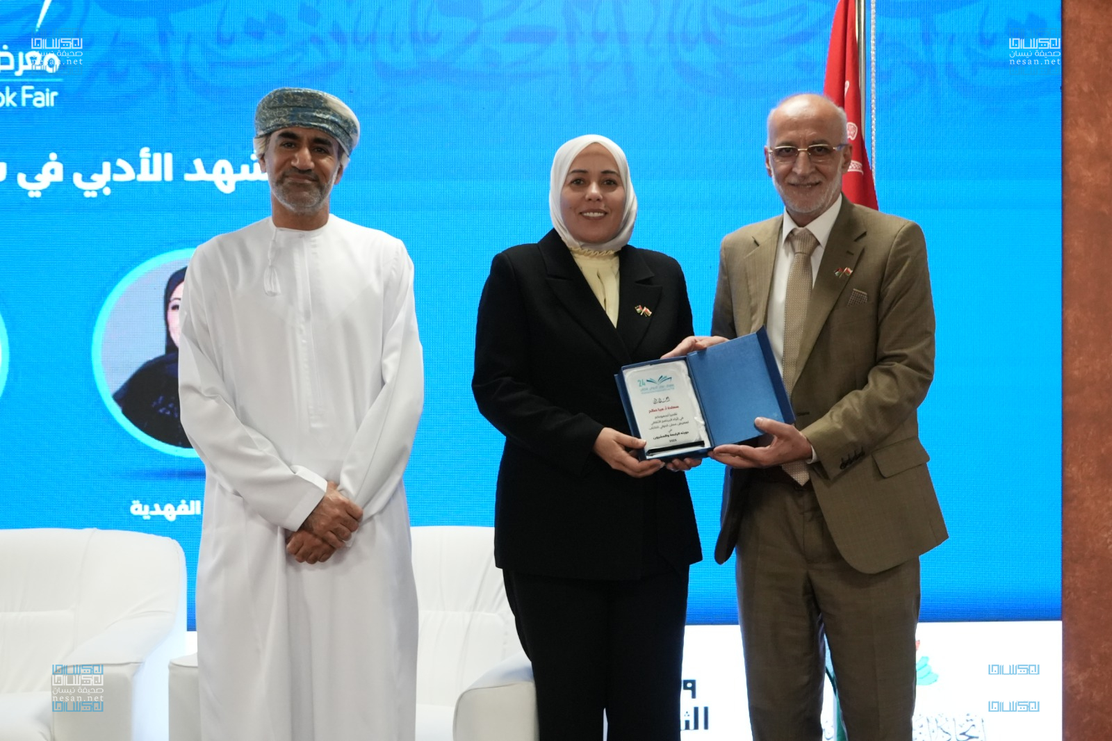 وفي نهاية الندوة، كرم رئيس اتحاد الناشرين الأردنيين ومدير معرض عمان الدولي للكتاب جبر أبوفارس المشاركين في الندوة بدرع المعرض.