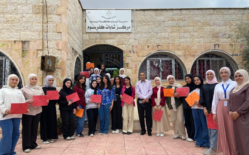 نيسان ـ اختتم مركز شابات كفرسوم فعاليات برنامج "التثقيف وأبطال التغيير الصحي"، المنفذ بالشراكة بين وزارة الشباب ومنظمة بلان العالمية ضمن مشروع "نجاحنا"، بمشاركة 25 يافعة من الفئة العمرية 15 إلى 17 عاماً، بعد استكمالهن البرنامج الذي استمر شهرًا كاملًا بواقع 20 جلسة تدريبية، بحضور مدير شباب محافظة إربد الدكتور حمزة العقيلي.