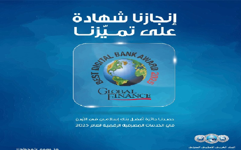نيسان ـ أعلنت مجلة غلوبال فاينانس العالمية ومقرها نيويورك عن حصول البنك العربي الإسلامي الدولي على جائزتها السنوية عن فئة أفضل بنك إسلامي في الأردن في الخدمات المصرفية الرقمية للعام 2025 وبحسب بيان الجائزة فقد جاء حصول البنك على هذه الجائزة المرموقة نتيجةً لعملية تقييم دقيقة شملت العديد من المعايير تضمنت استراتيجية البنك في التحول الرقمي، والابتكارات التكنولوجية التي يقدمها وتنوع المنتجات وخدماته الرقمية واعتمادها على عدد من العناصر أهمها الإبتكار والتميز في خدمة العملاء ، والدور الذي يقدمه البنك في مجال الخدمات المصرفية الرقمية .
