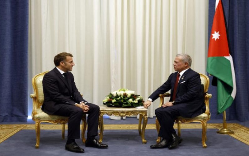 كما أكد جلالة الملك خلال لقاء جمعه بالرئيس الفرنسي توافق وجهات النظر بين الأردن وفرنسا حيال ضرورة تحقيق السلام العادل والشامل على أساس حل الدولتين.
