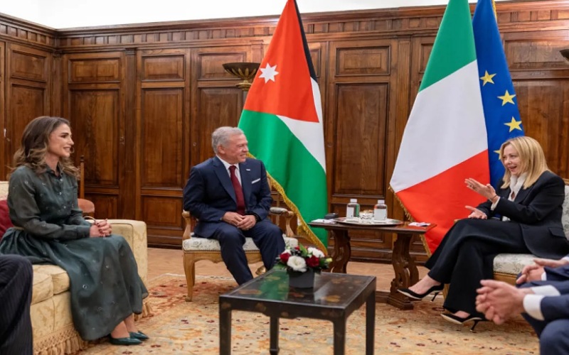وخلال اللقاء، الذي حضرته جلالة الملكة رانيا العبدالله، ثمن جلالة الملك دعم إيطاليا لحل الدولتين، ودورها في الاستجابة الإنسانية في غزة.