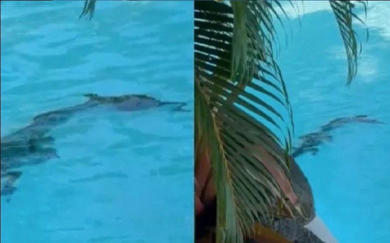 وأظهر مقطع فيديو متداول، التمساح مستلقياً في قاع المسبح بينما كان النزلاء على مقربة من المنطقة مسترخين تحت أشعة الشمس، ما أثار اهتمام مستخدمي مواقع التواصل الاجتماعي حول المخاطر الطبيعية في المنطقة.