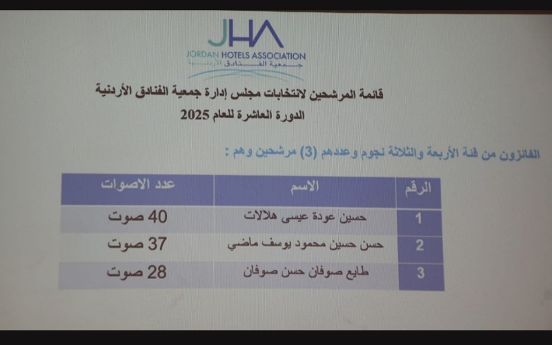 وذلك بالفوز الباهر في الإنتخابات التي جرت اليوم لمجلس ادارة جمعية الفنادق الأردنية .