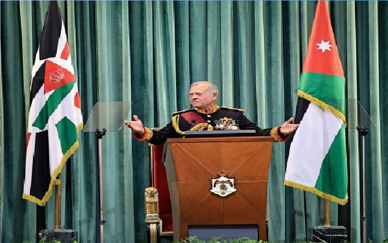 وتابع جلالته: " على مدى العقود شهدت منطقتنا والعالم حروبا وصراعات وأزمات اقتصادية، وتغيرت الأزمات وبقي الأردن قويا، مستندا إلى إرث من بنوا هذا الوطن على قيم العزة والكرامة، يحميه جيش عربي مصطفوي، سليل أبطال كانوا وما زالوا حماة للأرض وسياجا للوطن، ومهما تعاظمت الأحداث واشتدت، أقولها قولا واحدا: هنا، رجال مصنع الحسين، درعا مهيبا. فهذه الأرض المباركة ولادة الأحرار، والشباب الأردني، وأولهم الحسين، ابني وابنكم، جند لهذا الوطن، فقد قطعنا شوطا ليس بالقليل في الإصلاحات التي تعهدنا بها، لكن ما زال الطريق أمامنا طويلا، ويتطلب عملا منقطع النظير، وأمام هذا المجلس مسؤولية متابعة ما تم إنجازه في مسار التحديث السياسي، وتعزيز العمل الحزبي النيابي المكرس لخدمة الوطن – لا شيء غير الوطن".