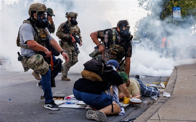 نيسان ـ تداولت وسائل إعلام أمريكية مقاطع مصوَّرة، تُوثّق استخدام عناصر فيدرالية أساليب عنيفة خلال احتجاجات مرتبطة بالهجرة، بما في ذلك الخنق، ورشّ "غاز الفلفل" الحارق، واستخدام المركبات لدفع المتظاهرين، بطريقة وُصفت بأنها قاسية وغير قانونية، ما أثار جدلاً واسعاً في الولايات المتحدة.