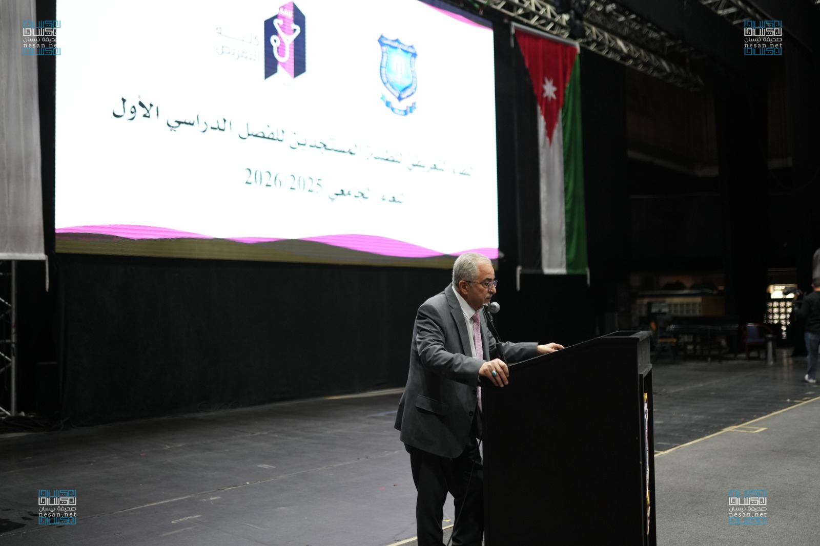وتضمن الحفل كلمات ترحيبية بدأت بكلمة رئيس الجامعة الأستاذ الدكتور ساري حمدان الذي رحب بالطلبة الجدد، مؤكدًا حرص الجامعة على توفير بيئة تعليمية محفزة وداعمة للتميز والإبداع.