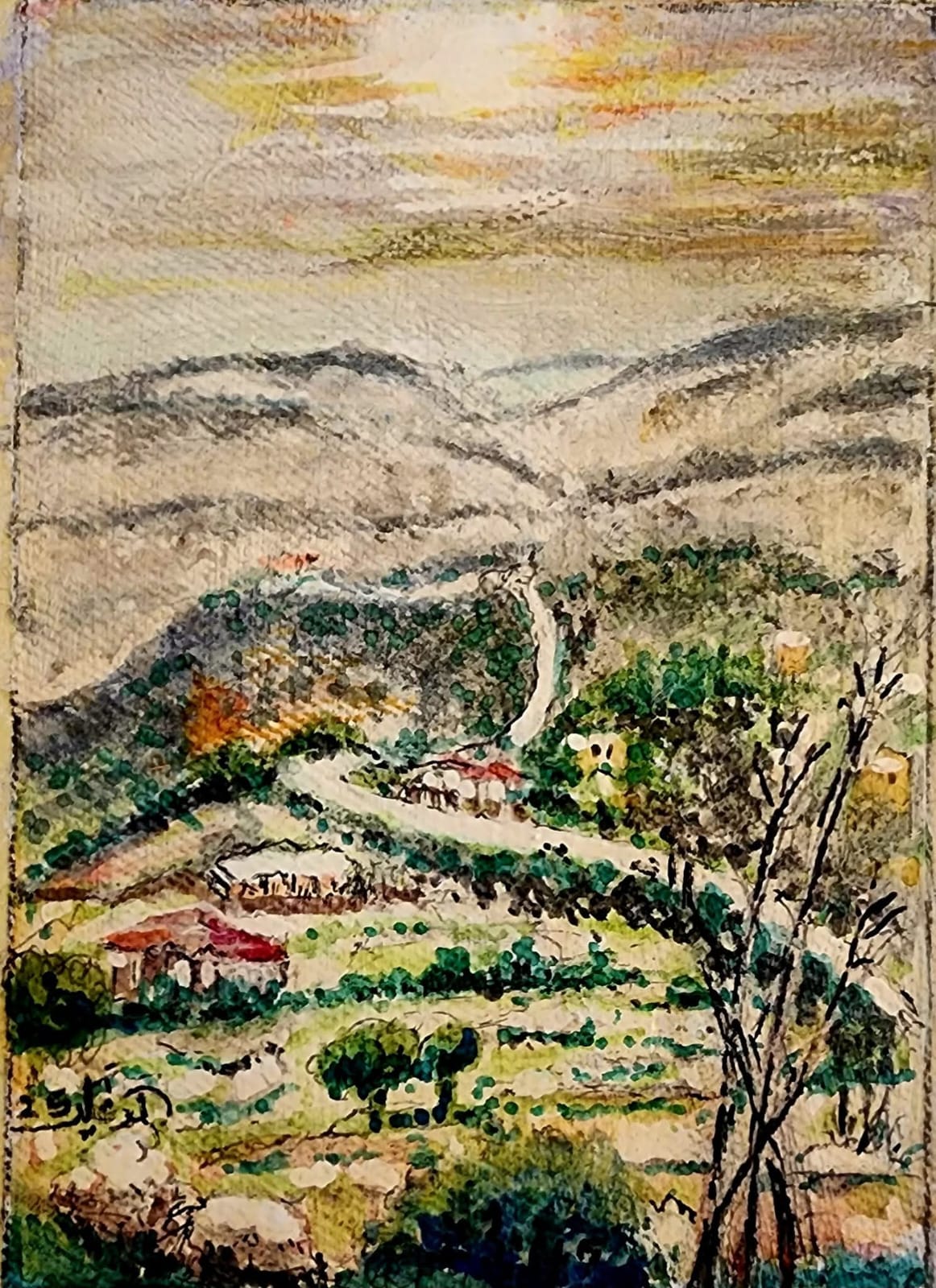 ليست اللوحة مشهدًا ريفيًّا فحسب، بل نافذةٌ تُفتح على ذاكرة الوطن.