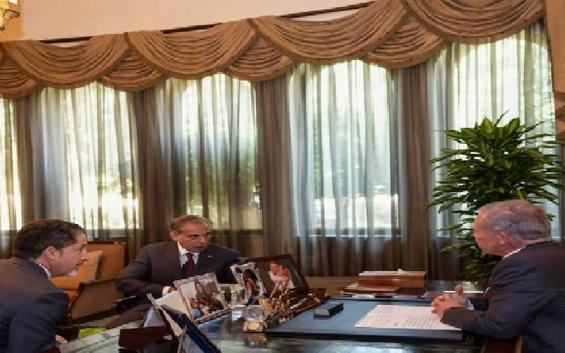 وعلق الديوان على الصورة: من اجتماع لجلالة الملك عبدالله الثاني برئيس الوزراء الدكتور جعفر حسان، بحضور مدير مكتب جلالته، المهندس علاء البطاينة.