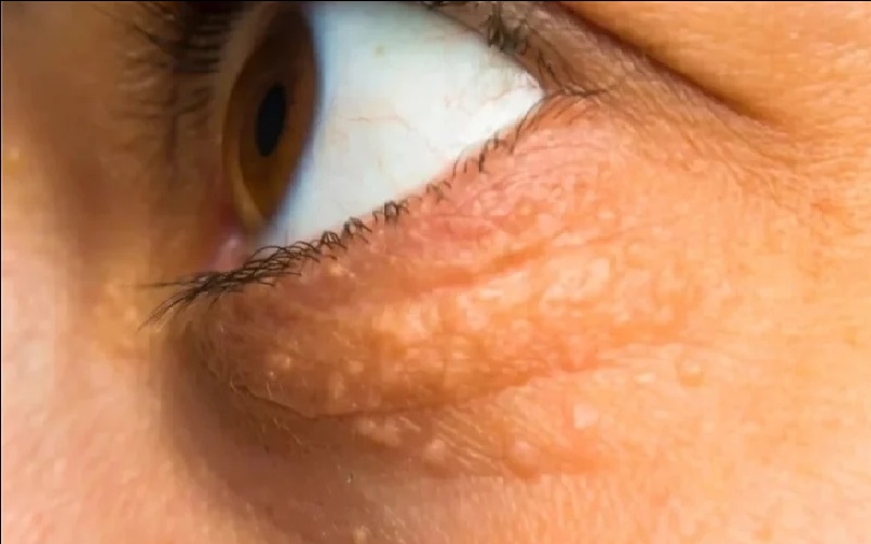 • بقع صفراء صغيرة بالقرب من الزاوية الداخلية للجفنين.