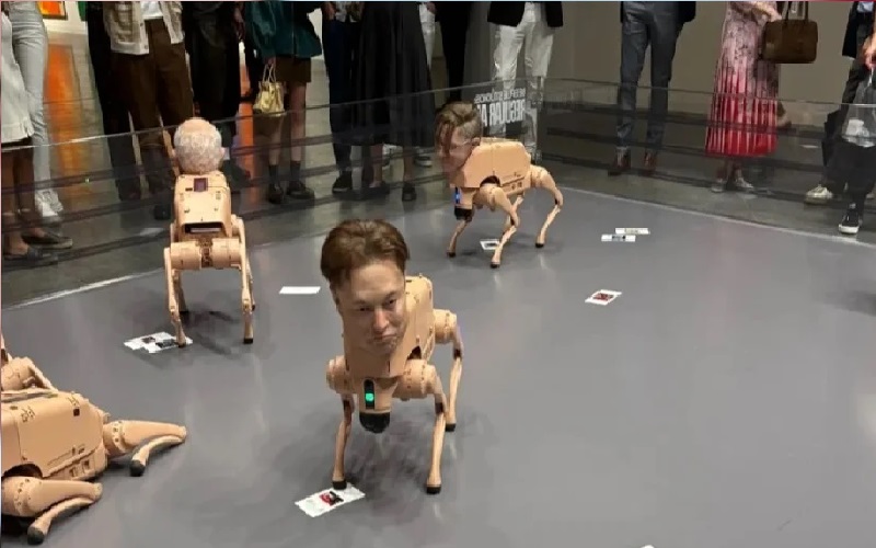 كلاب روبوتية بوجوه ماسك وبيزوس وزوكربيرغ في معرض فني تثير الجدل