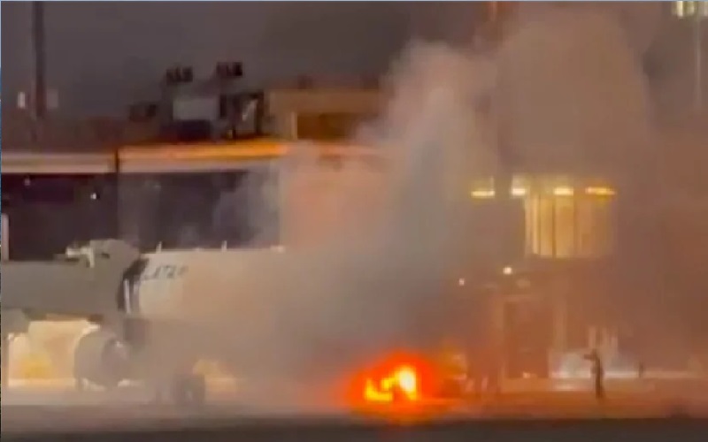وأظهرت مقاطع فيديو انتشرت على مواقع التواصل الاجتماعي تصاعد الدخان والنيران من أسفل الطائرة، بينما حاول موظفو المطار السيطرة على الحريق باستخدام مطافئ يدوية، كما وثّقت لقطات أخرى لحظة إجلاء الركاب عبر الجسر الإلكتروني، وكذلك عبر المزالق الهوائية، بمساعدة طاقم الطائرة وفرق الأمن المدربة على هذا النوع من الحوادث.