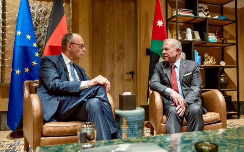 وتناول اللقاء عمق العلاقات الأردنية الألمانية، إذ أكد جلالته الحرص على توسيع التعاون في شتى المجالات، خاصة الاقتصادية والدفاعية، ومواصلة التنسيق لدعم جهود تحقيق الاستقرار في المنطقة.