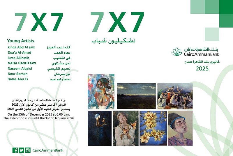 نيسان ـ عمان - يفتتح عند السادسة من مساء الاثنين المقبل 15 من الشهر الجاري في جاليري بنك القاهرة عمان بوادي صقرة المعرض الفني المشترك بعنوان سبعة في سبعة وتشارك فيه الفنانات , كندا عبد العزيز ودعاء العمد ولمى الخطيب وندى بشتاوي ونسيم القيسي ونور سرحان وصفاء ابوعيد.