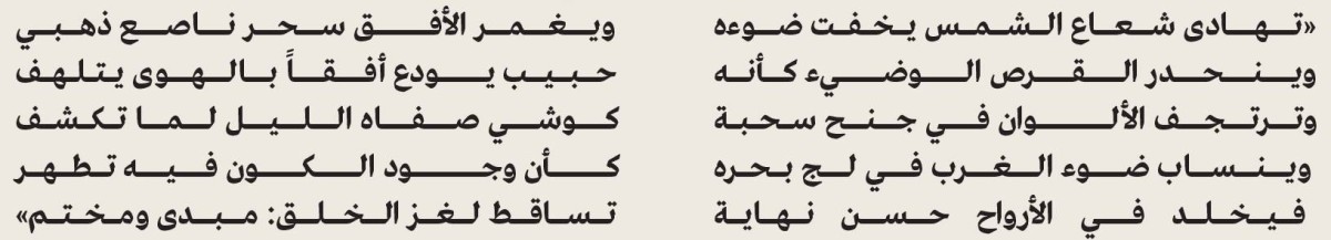 خلال تجربة عملية أجريناها بواسطة برنامج «شات جي بي تي»، طلبنا منه أن ينظم قصيدة عربية من الشعر البيتي على بحر الطويل تصف مشهد غروب الشمس، فكانت النتيجة أن صاغ النص الآتي: