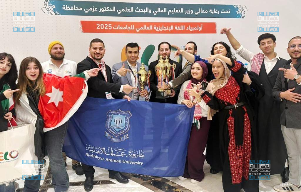 نيسان ـ في إنجاز أكاديمي وإبداعي يعكس تميز طلبتها وتكامل برامجها التعليمية، حققت جامعة عمّان الأهلية إنجازًا أكاديميًّا لافتًا بحصولها على المركز الثاني في محور امتحان اللغة الإنجليزية ضمن أولمبياد اللغة الإنجليزية العالمي للجامعات، وذلك من بين 55 فريقًا مشاركًا، حيث جاء المركز الأول من نصيب جامعة اليرموك، بينما حلّت جامعة النجاح- فلسطين في المركز الثالث. ويُعد هذا الفوز مؤشرًا واضحًا على المستوى المتقدم لطلبة الجامعة في الكفاءة اللغوية والدقة الأكاديمية وفق معايير تنافسية عالية.