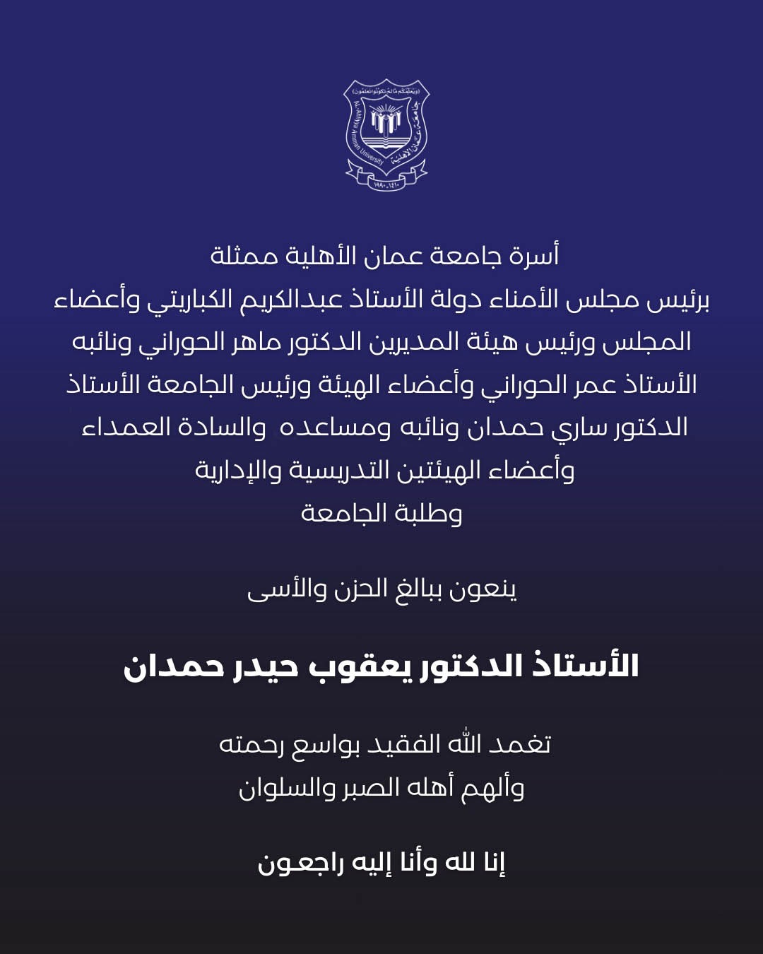 أسرة جامعة عمان الأهلية تنعي المرحوم