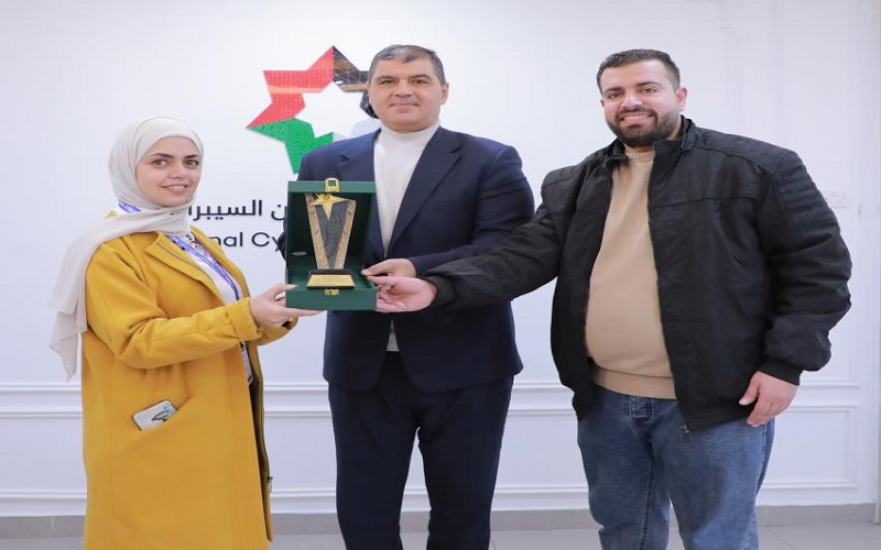 وفي هذا السياق قدّم عطوفة رئيس المركز الوطني للأمن السيبراني، المهندس محمد الصمادي،درع الجائزة للزملاء، مثنياً على جهودهما المتميزة وإسهاماتهما الفاعلة في مجال التوعية بالأمن السيبراني.