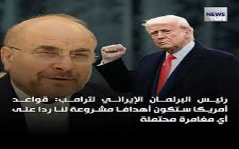 نيسان ـ حذر رئيس البرلمان الإيراني محمد باقر قالیباف الرئيس الأميركي دونالد ترامب من أن أي هجوم سيؤدي إلى قصف طهران لإسرائيل والقواعد الأميركية في المنطقة باعتبارها "أهدافا مشروعة".