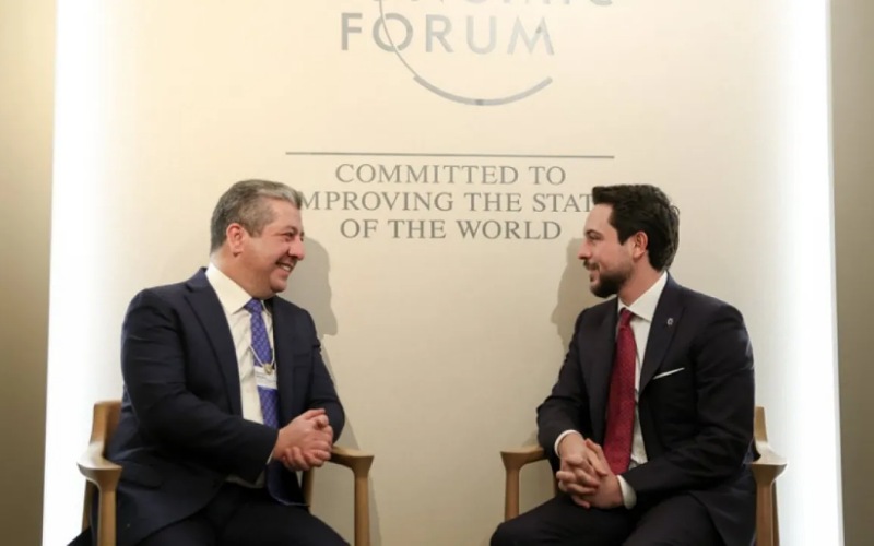 نيسان ـ عقدالأمير الحسين بن عبدﷲ الثاني ولي العهد، اليوم الخميس، لقاء مع رئيس حكومة إقليم كردستان العراق مسرور بارزاني، على هامش أعمال المنتدى الاقتصادي العالمي في مدينة دافوس السويسرية.